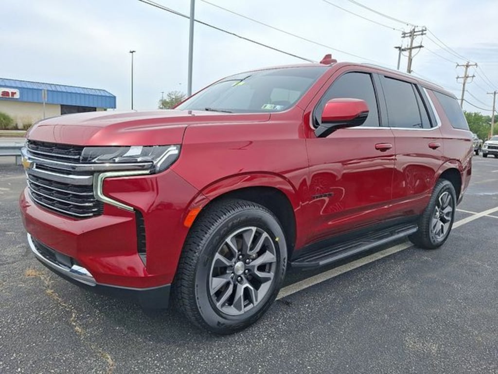 Certified. Cherry Red Tintcoat 2021 Chevrolet Tahoe LT 4WD 10-Speed Automatic with Overdrive EcoTec3 5.3L V8 Oil Change, Vehicle Detailed, Dealer Inspected, PA State Inspection and Emissions, 4WD, Black Leather, 1st & 2nd Row Color-Keyed Carpeted Floor Mats, 2 USB Data Ports, Auto-Dimming Inside Rear-View Mirror, Bright Front & Rear Door Sill Plates, Color-Keyed Carpeting Floor Covering, Driver & Front Outboard Passenger Airbags, Floor Console w/Storage Area, Hands-Free Rear Power Programmable Liftgate, HD Radio, Infotainment Display, Leather-Wrapped Steering Wheel, LED Daytime Running Lamps, License Plate Front Mounting Package, Memory Settings for Driver, Preferred Equipment Group 1LT, Remote Start, SiriusXM Radio w/360L, Universal Home Remote.